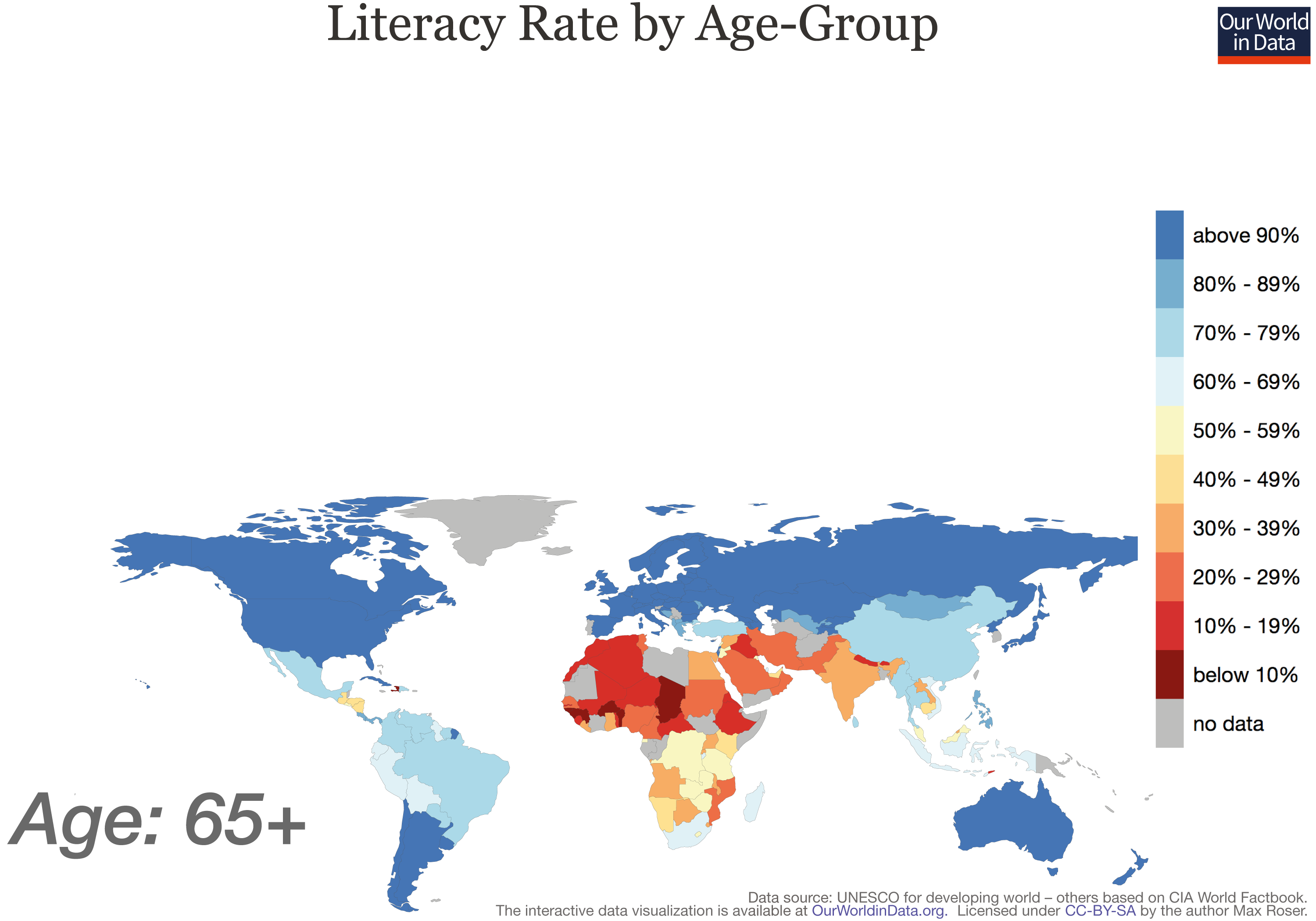 Years of schooling in 1870.– In 1870 the literacy rate of the world was 21%.– In 2014 the literacy rate of the world was 85%.