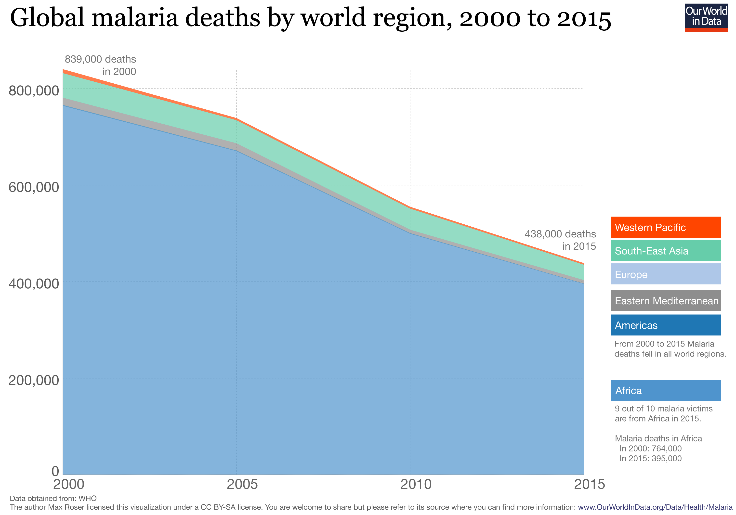 In many parts of the world malaria has been eradicated (in the US in 1951) and around the world, malaria mortality figures are falling.